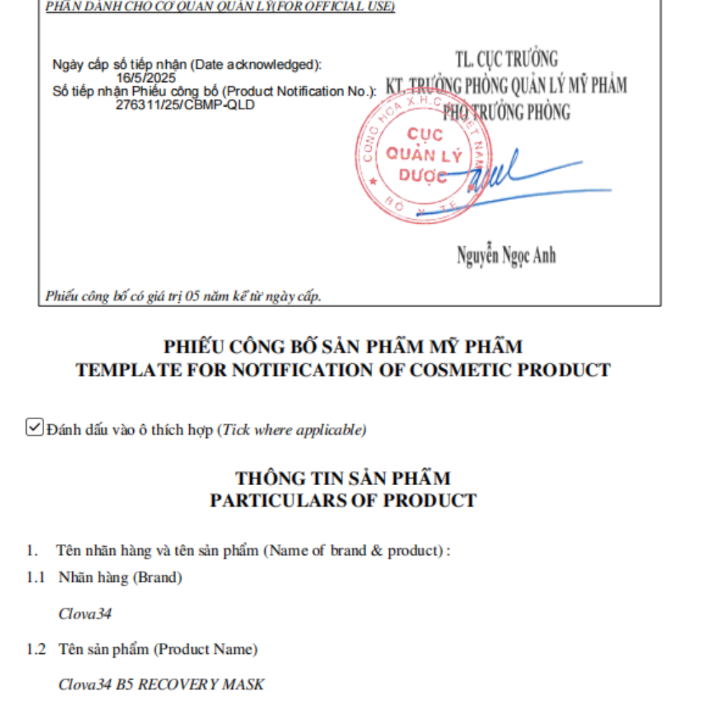 MẶT NẠ CLOVA34 B5: PHỤC HỒI CẤP TỐC, LÀM DỊU & CẤP ẨM SÂU