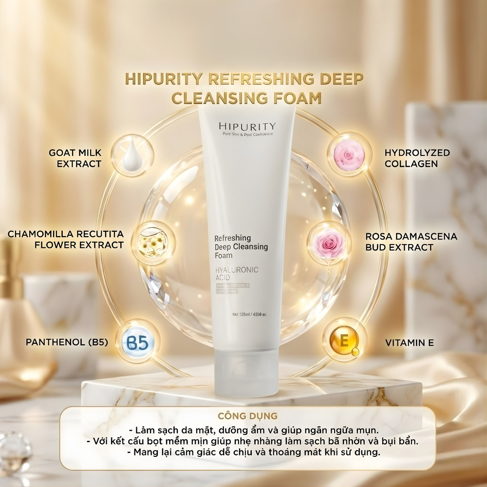 Sữa rửa mặt cao cấp giúp làm sạch sâu lỗ chân lông, loại bỏ bụi bẩn, dầu thừa và cặn trang điểm mà không gây khô căng da. Công thức chứa chiết xuất thực vật làm dịu cùng Amino Acid và Panthenol, giúp cân bằng độ ẩm tự nhiên, phục hồi màng ẩm bảo vệ da, mang lại cảm giác sạch thoáng – mềm mịn – tươi mới sau mỗi lần rửa